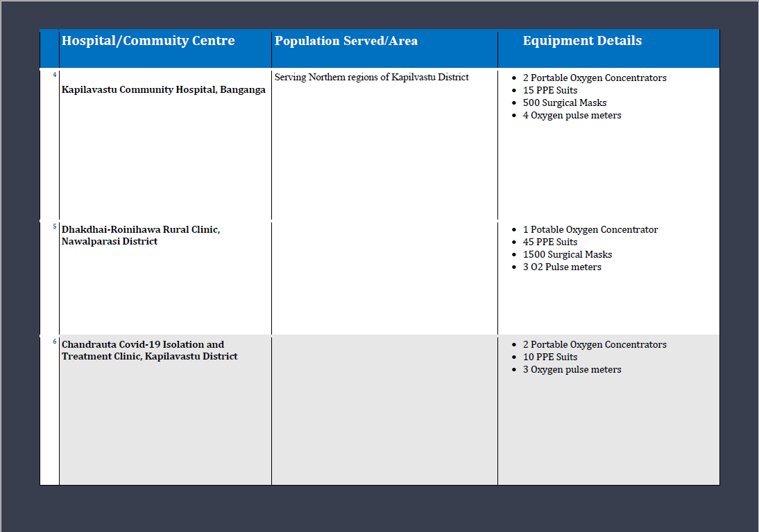 The second wave of the Covid-19 Pandemic in Nepal has hit Lumbini province especially hard. Reported Covid-19 cases in the country averaged at least 4000 a day in May of 2021, and remained high throughout the summer. The real number of cases is likely much higher due to a lack of testing capabilities. In Lumbini, Kapilavastu and Bhairhawa, hospitals became overwhelmed with patients and Oxygen was in short supply.